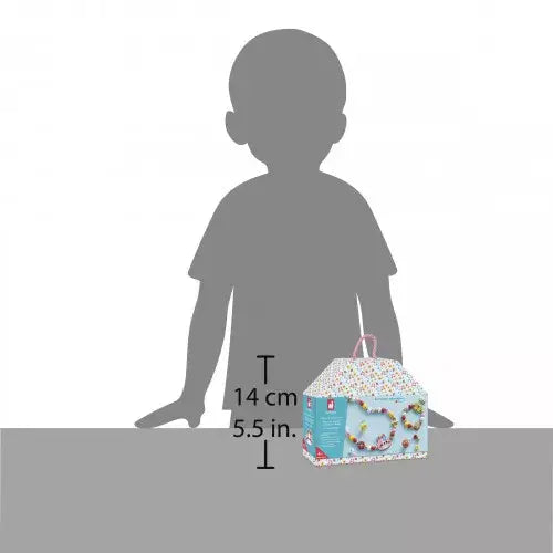 Create your own set of wooden jewellery! This set allows you to make 1 necklace, 1 bracelet and 2 rings on the theme of garden flowers thanks to a comprehensive range of content: 2 shaped and printed wooden beads, 3 round printed wooden beads, 33 coloured round beads, 22 gold beads, 2 rings with printed flat wooden beads, 1 sheet of 8 rhinestones, 1 elastic thread and 1 booklet with instructions and designs. The box becomes a cute handbag in which you can keep your jewellery and other little secrets. This activity helps develop creativity and motor skills and is suitable for children aged 4 and over.