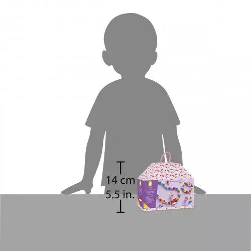 Create your own set of wooden jewellery! This set allows you to make 1 necklace, 1 bracelet and 2 rings on the theme of rainbow land, the wonderful world of unicorns and rainbows, thanks to a comprehensive range of content: 2 shaped and printed wooden beads, 3 round printed wooden beads, 33 coloured round beads, 22 gold beads, 2 rings with printed flat wooden beads, 1 sheet of 8 rhinestones, 1 elastic thread and 1 booklet with instructions and designs. The box becomes a cute handbag in which you can keep your jewellery and other little secrets. This activity helps develop creativity and motor skills and is suitable for children aged 4 and over.
