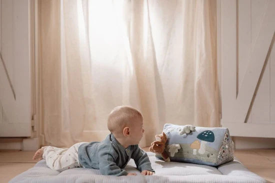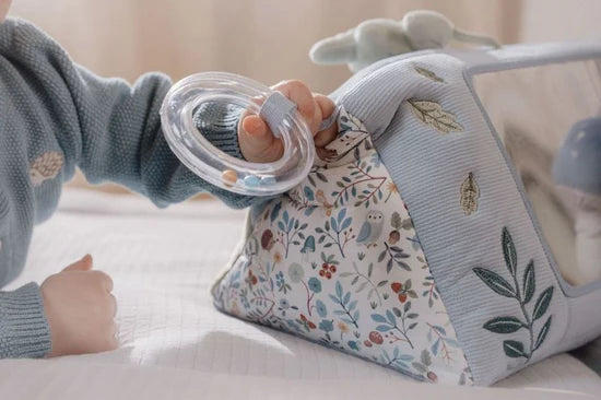 Let’s go on adventure with Forest Friends! This versatile and entertaining Activity Triangle takes your little one on an adventure through an enchanted forest during tummy time. Along the way there is so much to explore. From crackling leave to a little mirror for self-exploration. Packed with playful features and fun textures, it will engage your baby’s senses and imagination.