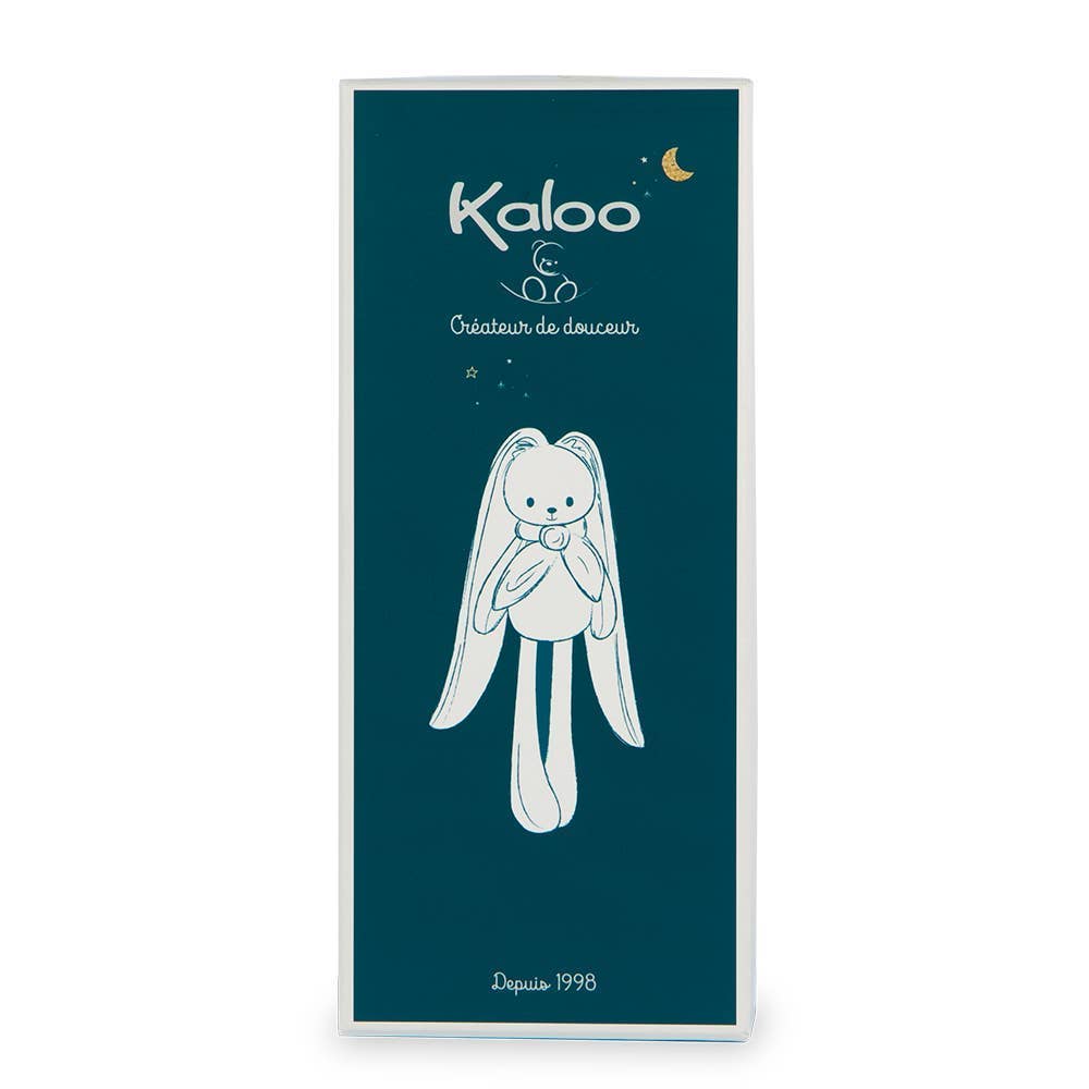 This cheerful little rabbit of 9,75 inches has such long ears that you can hang it anywhere to keep it and never lose it. He can do anything with them: do headstands, go on the see-saw, cling to the clothesline, and even swing all the way to the moon. Its extra-long ears help the rabbit to wrap your baby in tender hugs and share sweet moments with them. Machine washable. Presented in a pretty giftbox you can customize with a message at the allocated space under the cover.