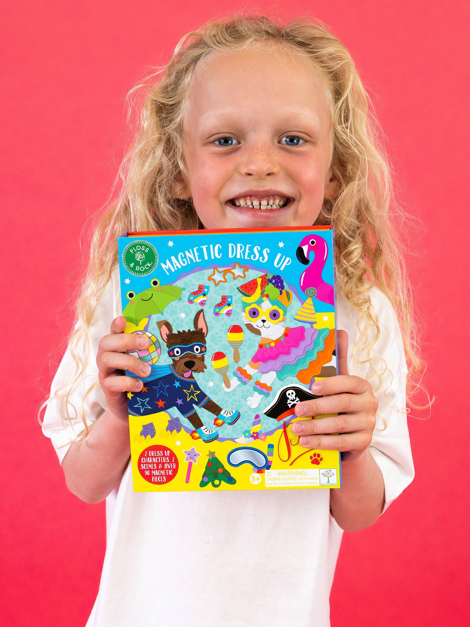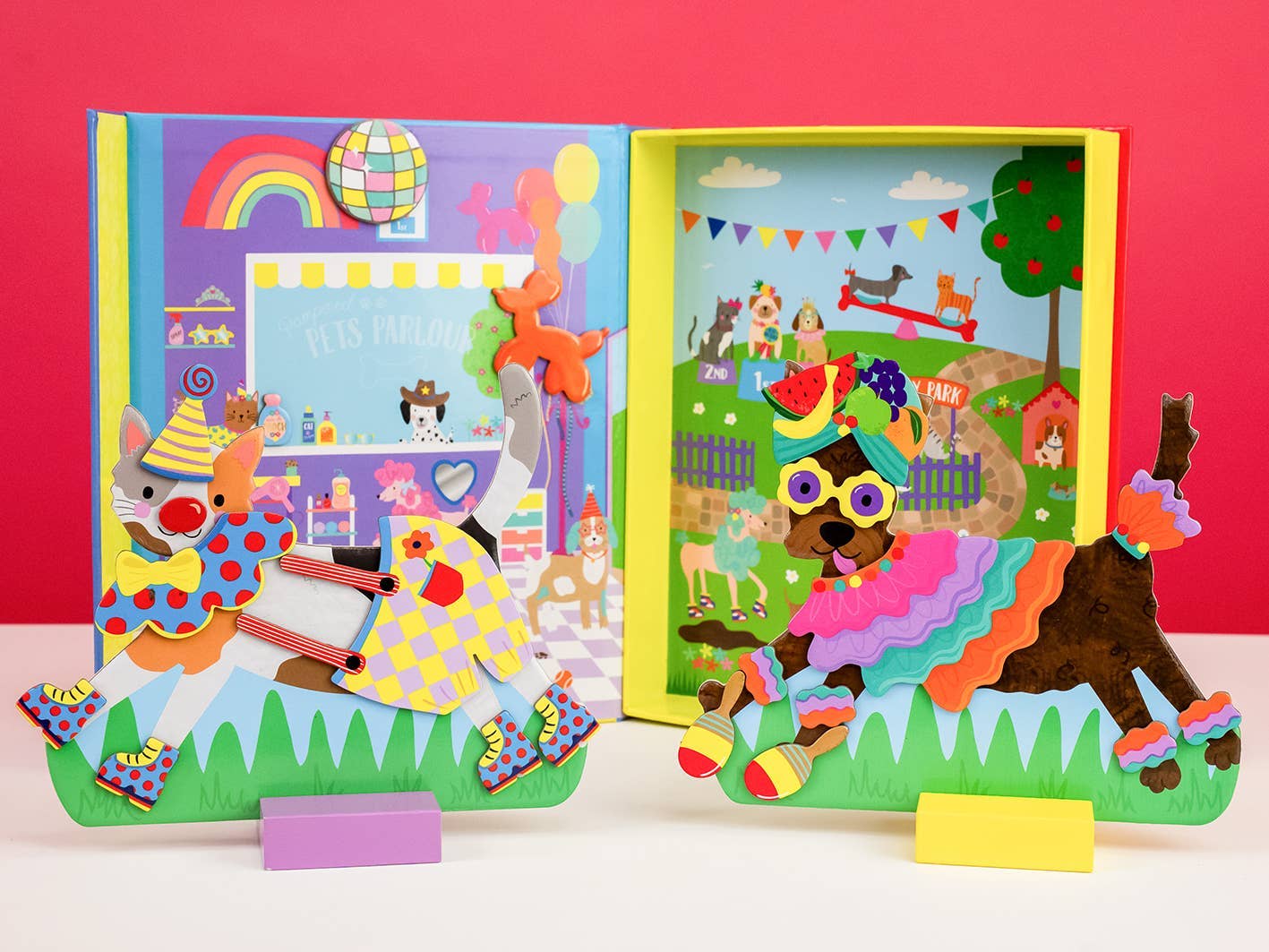 Paw-fect playtime fun with our Magnetic Dress Up Pets! The set comes with 2 magnetic pets - a playful pooch and a super cute cat, two wooden stands and over 90 magnetic outfit and play pieces to mix and match. The reusable box doubles up as a backdrop, with a pets parlour and a fun outdoor play scene. Accessorize the pets parlour by adding magnetic accessories! The lovely reusable box comes with a magnetic closure and keeps all parts safe for next time!